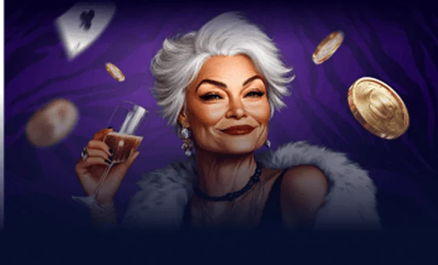 Spin Granny casino interface uses a dark purple base and bright orange buttons for key actions. The visual theme follows the brand character: a confident granny who appears on banners and promo cards. The artwork shows her with casino symbols such as playing cards and dice. It also uses money, gift boxes, and “lucky spin” visuals to match promotions and activities. This style stays consistent across the homepage and the promotions page.